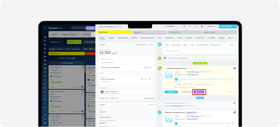 Кроме того, помощник умеет анализировать содержание звонков и предлагать дальнейшие действия. Например, если клиент упоминает о проблеме, CoPilot может автоматически создать задачу для службы поддержки или отправить уведомление ответственному менеджеру.